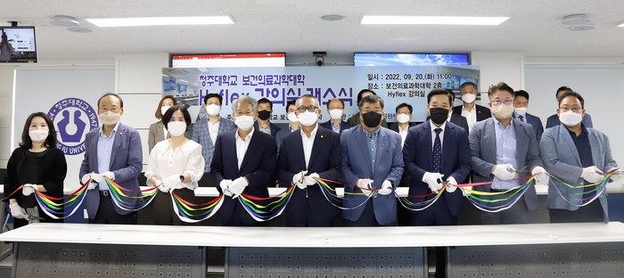청주대학교는 면대면 강의와 비대면 강의를 동시에 구현할 수 있는 멀티시스템 형태의 Hyflex(hybrid+flexible) 강의실을 구축했다고 20일 밝혔다.