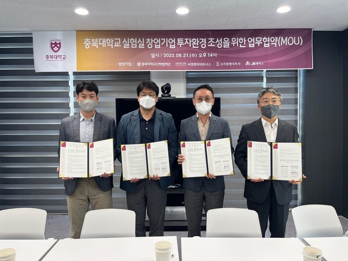 또한, 충북대와 업무협약을 맺은 액셀러레이터(AC)인 씨앤벤처파트너스와 벤처캐비탈(VC)인 제이비벤처스는 민간투자주도형 기술창업지원 프로그램(TIPS)의 운용사로 충청권의 다양한 분야 스타트업을 발굴·육성 해온 투자기업이다. 이들은 2022년 충북대학이 수행하고 있는 '실험실창업선도대학사업'을 통해 발굴된 우수 실험실 창업기업에 초기투자(6억원)를 확정했으며, 앞으로 발굴 및 육성될 실험실 창업기업들에 대한 기대와 더 높은 성과를 기대하고 있다.