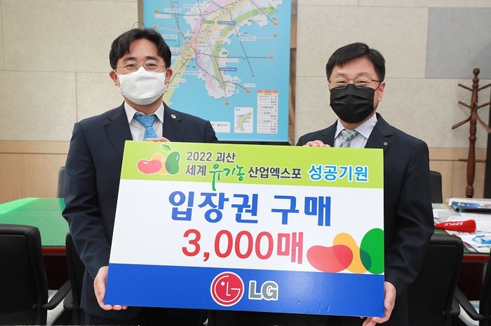 LG그룹은 괴산유기농엑스포의 성공개최를 기원하며 23일 입장권 3000매(2400만원 상당)구매 협약을 했다.