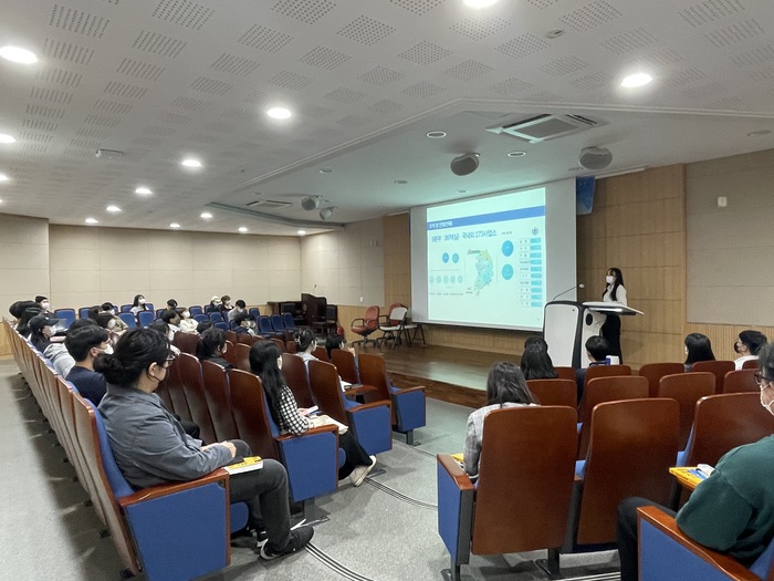 청주대 대학원 세미나실에서 진행된 이번 채용설명회는 한국전력공사 인사담당자가 직접 학교를 방문, 50여 명의 학생에게 맞춤 행사로 진행됐다.