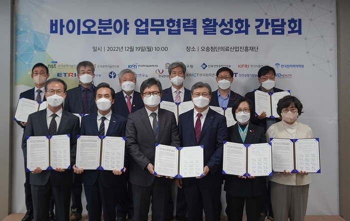 이번 간담회에서는 KBIOHealth와 바이오협의체 소속 출연연 간 바이오분야 연구개발 업무협력을 위한 다자간 업무협약(MOU)이 체결했다.