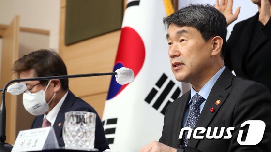 | 이주호 사회부총리 겸 교육부 장관과 박보균 문화체육관광부 장관이 5일 오후 서울 종로구 정부서울청사 별관에서 열린 2023년 업무계획보고 브리핑을 하고 있다. 2023.1.5/뉴스1 © News1 김명섭 기자 |