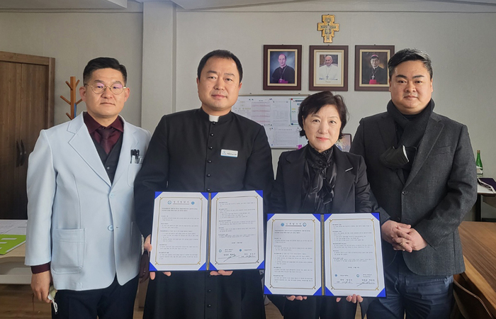 협약식에는 의료정보학과 이미준 교수와 서범준 교수, 당진성모병원장 및 관계자들이 참석했다.