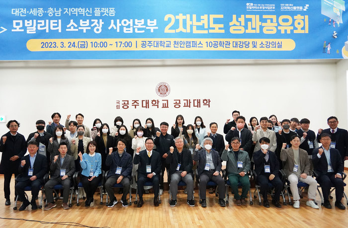 공주대 대전·세종·충남 지역혁신플랫폼 모빌리티 소부장 사업본부는 ‘공주대학교 천안캠퍼스 제10공학관’에서 실시한 ‘2차년도 모빌리티 소부장 사업 성과공유회’를 성황리에 개최했다.