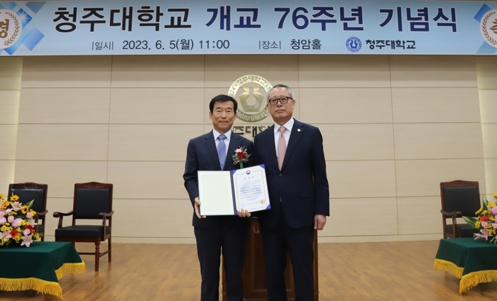 청주대학교 개교 76주년 기념식이 5일 보건의료과학대학 청암홀에서 개최됐다.