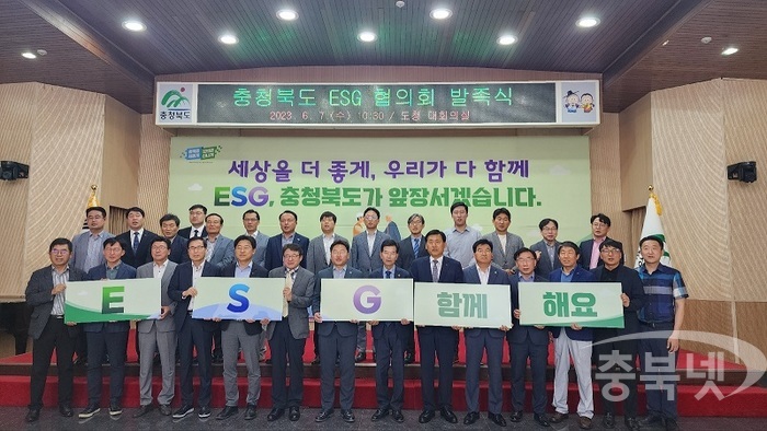 충북도와 청주상공회의소는 7일 도청 대회의실에서 ESG 분야 산·학·관 전문가들로 구성된 협의회 회원 30여명이 참석한 가운데 '충북도 ESG 협의회'(이하 협의회) 발족식을 개최했다.