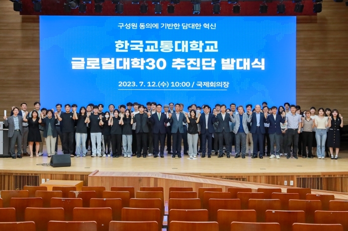 한국교통대학교는 12일 대학본부 2층 국제회의장에서 '한국교통대학교 글로컬대학30 추진단 발대식'을 개최했다.