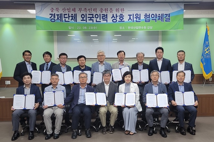 청주에 위치한 한국산업연수원은 23일 충북지역 14개 경제단체와 '충북산업체 부족인력 외국인 상호 지원을 위한 업무협약'을 체결했다.
