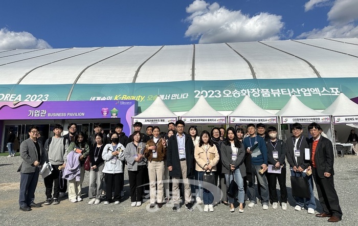 화장품산업학과 석·박사 학생들은 지난 17일부터 21일까지 오송생명과학단지 일원에서 열린 2023 오송화장품뷰티산업엑스포에 직·간접적으로 참여해 기업 홍보와 함께 현장 학습의 기회를 톡톡히 누렸다.