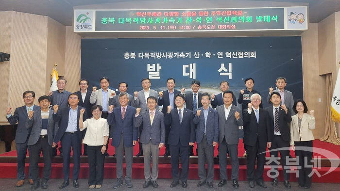 ![]() 지난 5월 11일 충북도청 대회의실에서 충북 다목적방사광가속기 산.학.연 혁신협의회 발대식이 열렸다 © 충북넷 |