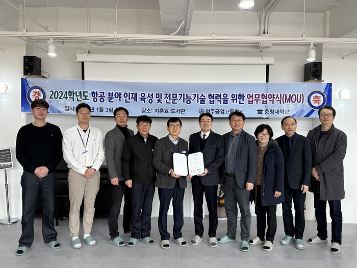 협약식에는 송승호 충청대 총장과 김경희 청주공고 교장 등 관계자들이 참석해 항공분야 협력 방안과 교류 프로그램 등을 논의했다.
