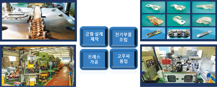 주력 생산품인 프레스금형, 전기차단기 및 개폐기용 접속단자 및 가구물 등을 ㈜LS일렉트릭, ㈜태인, ㈜새한, ㈜SH테크, ㈜하이베로, YM Tech, 알엘씨전자 등 국내 유수기업에 납품한다.