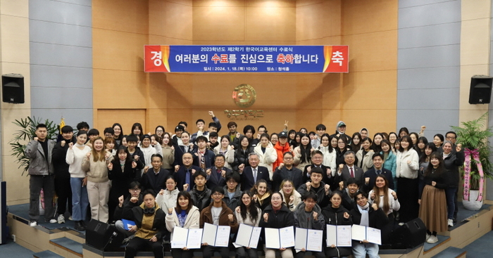 김윤배 총장은 “그동안 낯선 환경과 문화 속에서 한국어를 배우기 위해 최선을 다한 학생들의 노고에 큰 박수를 보낸다”며 “앞으로도 학업과 어학에 정진해 목표를 이루길 바란다”고 말했다.