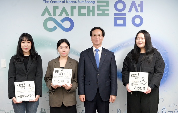 음성군이 28일 어려운 경제에도 창업 사업화에 성공한 청년 대표들의 결실을 응원하기 위해 맞춤형 현판을 제작해 전달했다.
