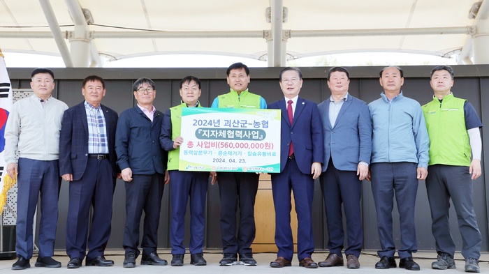 충북농협 영농지원발대식과 농촌일손 돕기 행사에서 열린 전달식에는 충북도, 축산물품질평가원, 충북기업진흥원, 농산물품질관리원, 충북농협, 농협괴산군지부, 지역 농·축협 관계자들이 참석했다.