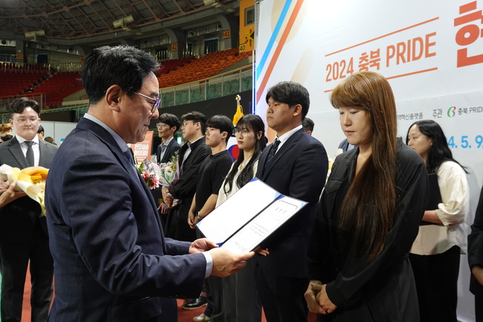 ![]() ▲ 김세나 ㈜ 메디아크 대표는 지난 9일 청주체육관에서 열린 2024 충북 PRIDE 표준현장실습 학생-기업 매칭데이 행사에서 충북대 총장 표창을 수상했다. © 충북넷 |