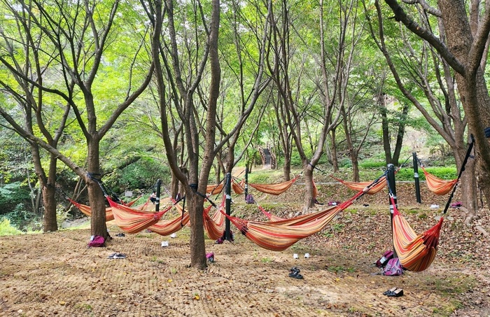 ![]() ▲ 증평군의 대표 관광자원인 좌구산 휴양랜드가 자연 속 휴식·체험·힐링을 한 번에 즐기는 종합관광휴양지로 발돋움하고 있다. 사진은 좌구산 숲에 설치한 산림치유 시설인 해먹.(증평군 제공) © 충북넷 |