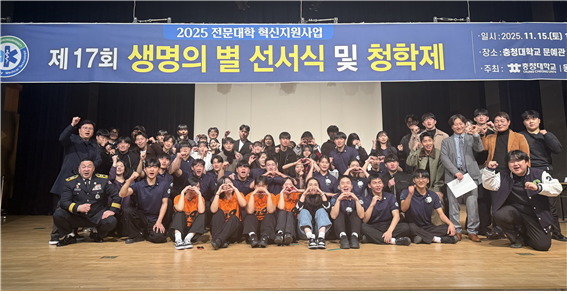 [충북넷 조민상 기자] 충청대 응급구조과는 지난 15일 교내에서 ‘17회 생명의별 선서식 및 청학제’를 열고, 예비 응급구조사로 성장해 나갈 1학년 학생 26명에게 생명의 뱃지를 수여했다.