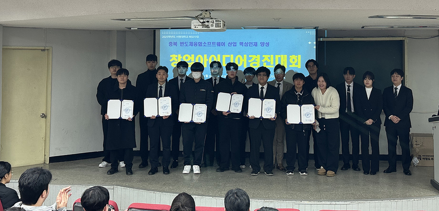 행사 마지막으로 ‘반도체 융합 SW 아이디어 경진대회’가 열렸으며, 서원대 컴퓨터공학과와 AI소프트웨어학과 학생들, 그리고 충북 지역 고등학생들이 참여한 가운데 운호고등학교 2학년 최서준 학생이 최우수상을 수상했다.