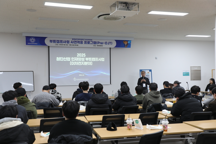 충북보건과학대는 22일부터 23일까지 이틀간 증평 벨포레리조트에서 신입생과 사업 관계자 등 70여 명이 참석한 ‘예비부트캠프생 사전적응프로그램(Pre-OJT)’을 성공적으로 운영했다.