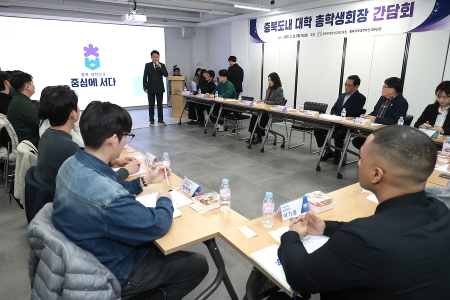 이번 간담회에는 강동대, 국립한국교통대, 세명대, 청주대, 충북대, 충청대 등 도내 14개 대학 총학생회장 및 부총학생회장 등 20명이 참석했으며 김영환 도지사를 비롯 도 미래인재육성과, 충북RISE센터 관계자들이 대학생과 직접 소통에 나섰다.