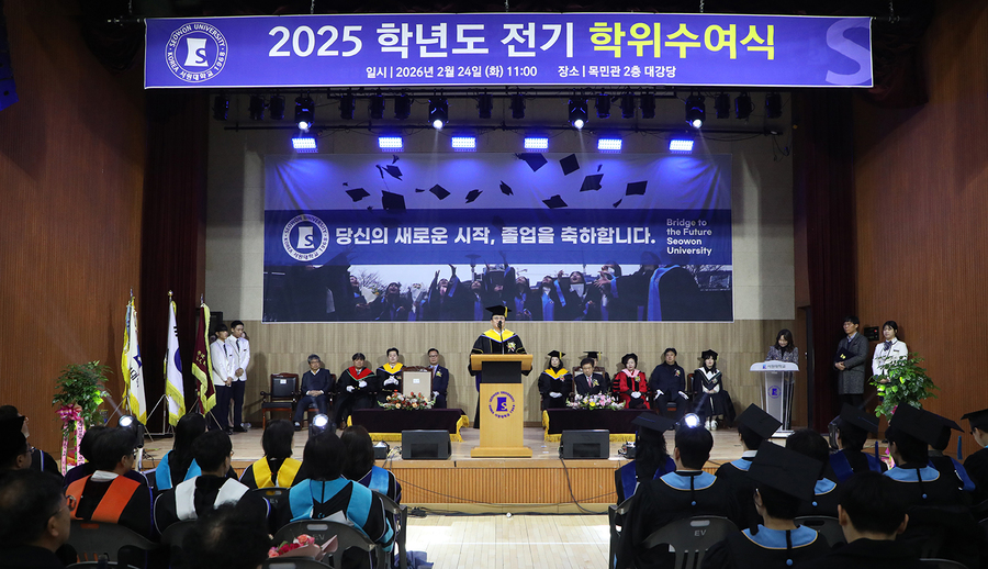 [충북넷 신수빈 기자] 서원대는 24일 2025학년도 전기 학위수여식을 개최하고 학부 1306명과