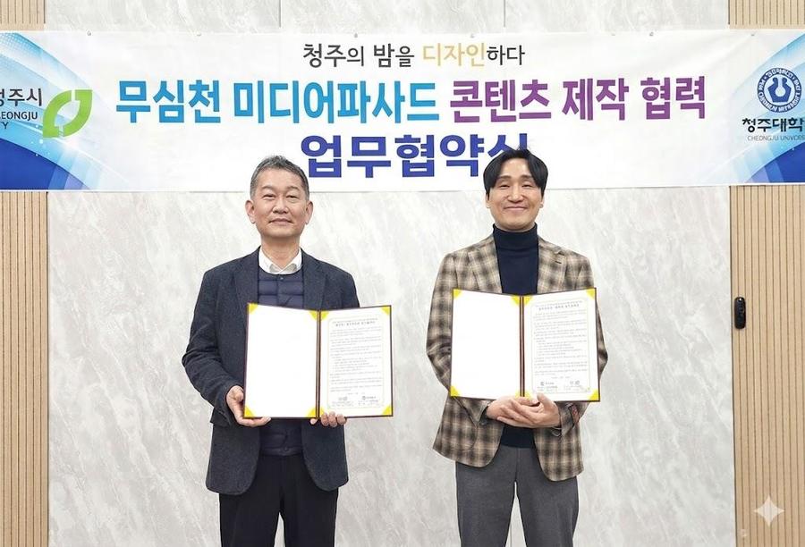 [충북넷 신수빈 기자] 청주대 디지털미디어디자인학과와 청주시는 서문교·청남교를 활용한 공공 미디어아트 콘텐츠 제작을 위해 업무협약했다.