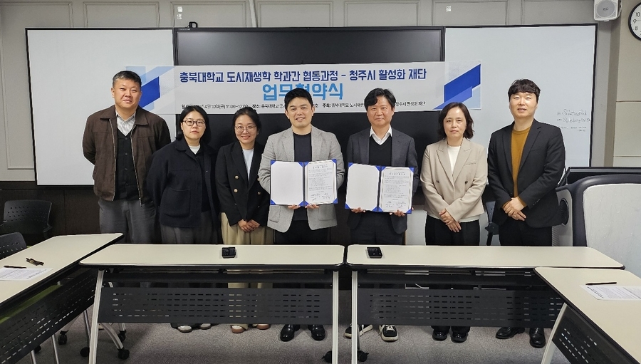 [충북넷 신수빈 기자] 청주시활성화재단과 충북대 도시재생 협동과정은 도시재생 활성화와 인재 양성을 위해 협력에 나선다.