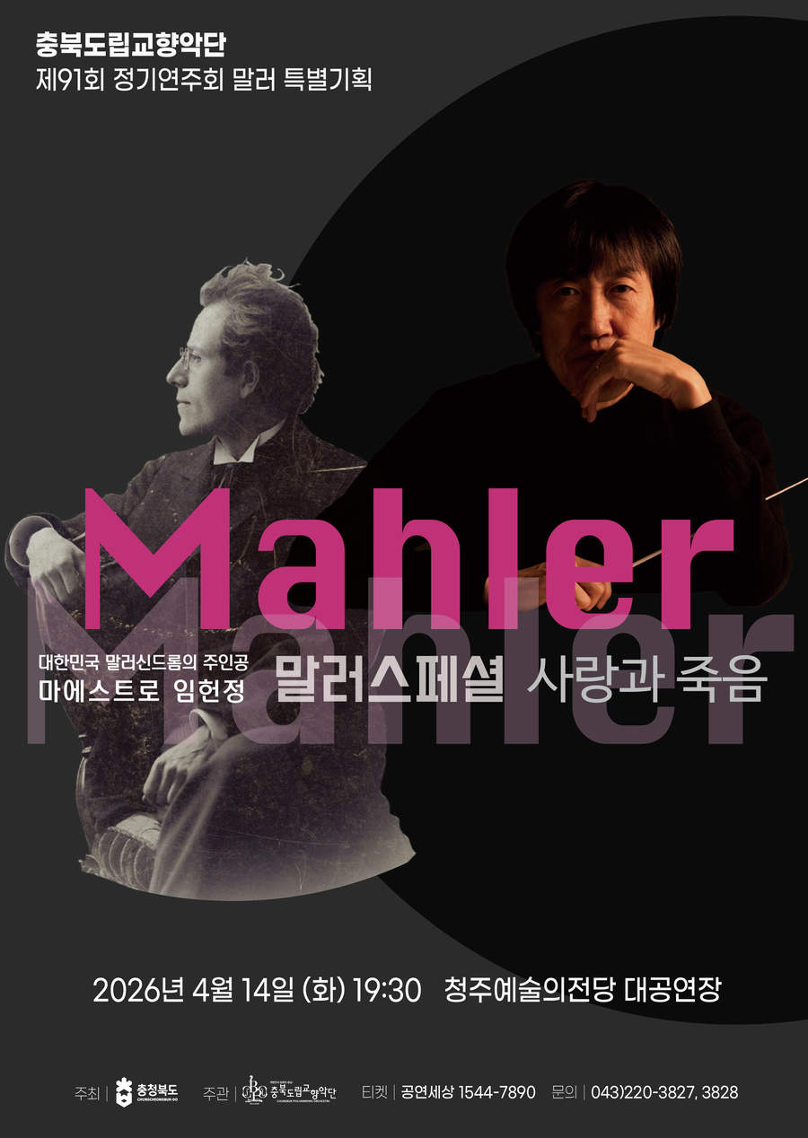 [충북넷 신수빈 기자] 충북도립교향악단은 오는 14일 오후 7시 30분 청주예술의전당 대공연장에서 91회 정기연주회 ‘말러 스페셜 〈사랑과 죽음〉’을 개최한다.