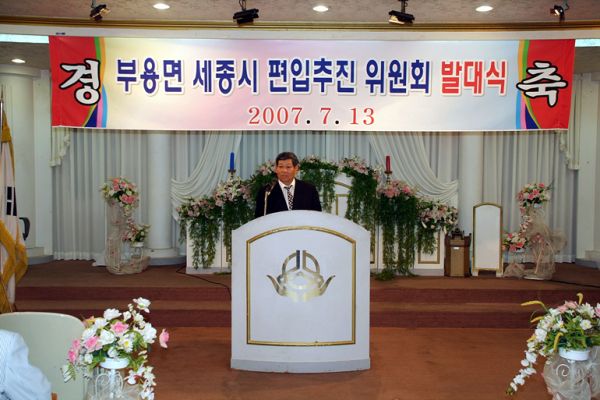 청원군 부용면 주민 50여 명은 13일 오전 부용신용협동조합 건물 내 예식장에서 ‘부용면 세종시 편입 추진 위원회’(위원장 채평석)를 결성하고, “향후 세종시 관련법의 국회 통과 과정에서 편입을 희망하는 주민의 목소리를 정확하고도 조직적으로 알려나갈 것”을 공개 선언했다.