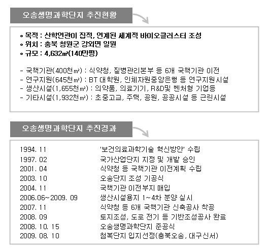 제약기업과 국책기관, 아파트, 원룸, 학교, 공원 등이 동시다발적으로 건설되고 있는 이곳은 국내 유일의 바이오·보건의료 분야 특화 국가산단인 충북 청원군의 오송생명과학단지다.