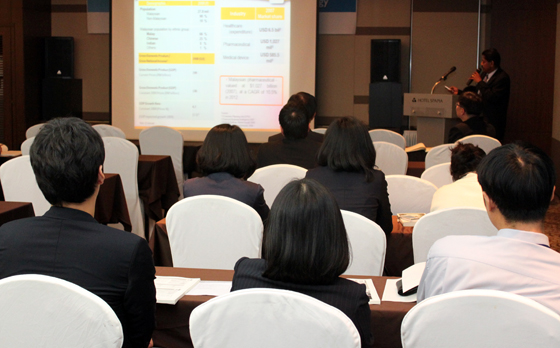 말레이시아 기업들의 발표에 이어 LG생명과학의 임동철 박사와 한올바이오파마의 김재환 부사장, 바이오트라이온 이효실 박사, 바이오랜드 김영희 박사, 종근당의 이성숙 연구소장이 각각 20분씩 영어로 회사소개와 충청권 선도산업으로 수행중인 과제에 대한 발표가 이어졌다.