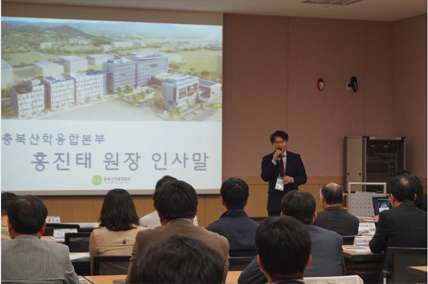 홍진태 원장은 인사말에서 "충북산학융합본부가 2013년 전국 산학융합지구 조성사업 연차 평가에서 '우수 기관'으로 선정돼 국비 2억원을 추가로 받았다"며 "이는 오늘 참석한 여러분들 같이 우수한 기업들이 많이 입주해 활발한 기업활동을 하고 있기 때문"이라고 말했다.