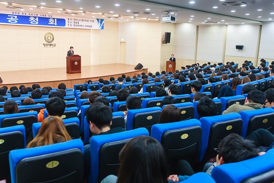 이번 공청회는 황신모 총장을 비롯해 교수, 직원, 학생, 정정순 충북도 행정부지사와 경청호 총동문회장 등 500여명이 참석한 가운데 청주대 인재개발원 공무원 양성종합계획을 발표했다.