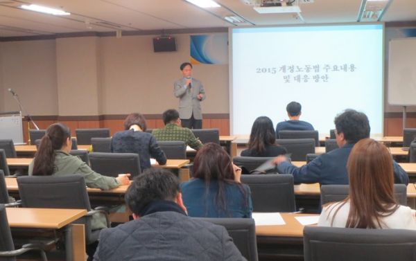 주요 내용은 근로계약서 작성과 교부강화, 최저임금 기준‧적용 등 올해 개정된 노동법 주요내용, 통상임금, 비정규직 종합대책, 근로시간 단축 등 인사노무관리의 핵심 쟁점사항과 전망 등에 대한 설명으로 진행됐다.