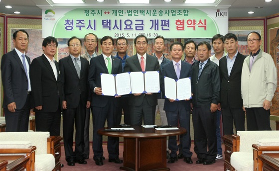 청주시는 11일 시청 접견실에서 개인·법인택시운송사업조합과 읍·면지역 택시요금 복합할증률을 현행보다 20% 낮추는 데 최종 합의했다.