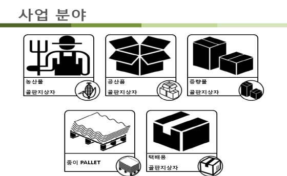 그 결과 농산품·공산품 골판지상자는 물론이고, 중량물 골판지상자, 택배용 골판지상자와, 종이 팔레트까지 사업 역역을 넓히고 있다.