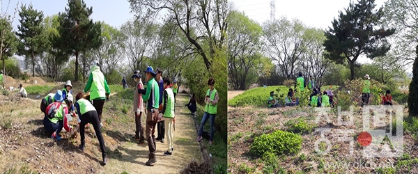 갑작스럽게 찾아온 무더위 속에서 진행된 나무심기는 4월22일 지구의 날을 기념하여 시민100여명이 참여하여 2천여 그루의 자생종 식물을 심은 행사였다. 이날 심겨진 식물은 모두 우리나라 자생종으로서 향기가 독특한 산파, 강열하게 붉은 범부채, 노랑무늬흰붓꽃, 터리풀, 가는 잎 오이풀, 검은종덩굴, 애기나리, 산수국, 고려엉겅퀴, 등칡, 둥근잎정향나무 등 12종이 보식되었다. 두루 살펴보니 마침 뒷날 내려준 봄비 덕분인가 잘 활착되어 퍼들퍼들 생기를 보인다.