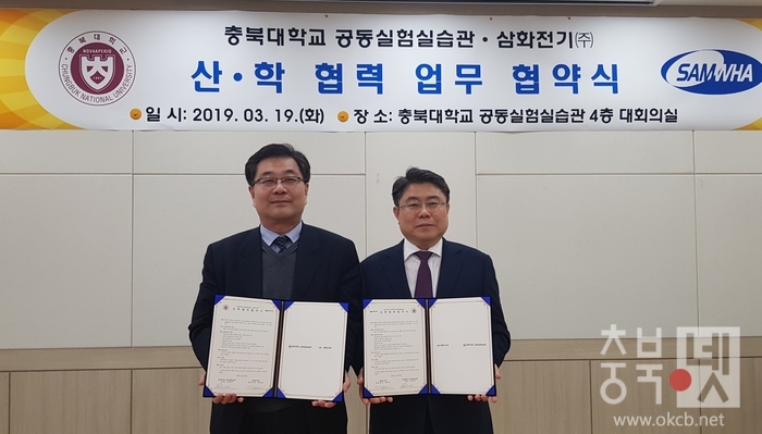 [충북넷=이성기 기자] 충북대학교(총장 김수갑) 공동실험실습관은 지난 19일 오후 공동실험실습관 4층 대회의실에서 삼화전기(주)와 첨단연구장비의 공동 활용과 산업기술의 발전을 위한 산학협력 협약을 체결했다고 20일 밝혔다.