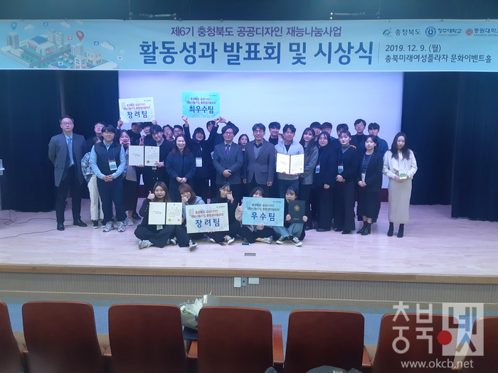 이날 행사에는 공공디자인 활성화 유공자 및 재능나눔사업 활동 우수팀에 대한 시상식도 가졌다. 공공디자인 활성화 유공자로 청주대학교 조성배 교수와 중원대학교 이아람 교수가 도지사 표창을 받았다.