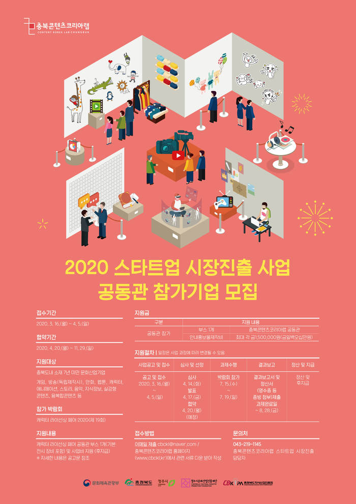 충북콘텐츠코리아랩에서 '2020 스타트업 시장진출사업' 참가기업을 모집한다.