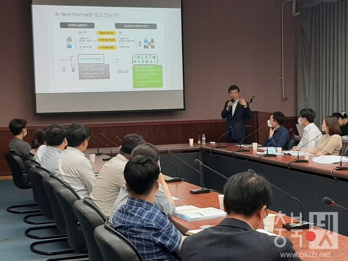 충북과학기술혁신원(원장 노근호)은 기관의 미래 역량강화를 위해 7월 7일 과기원 중회의실에서 나경환 단국대 부총장을 초청하여‘Next Normal 시대 산업기술 전략 방향’을 주제로 특강을 가졌다.