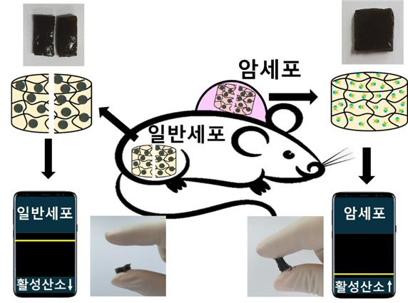 연구팀은 암세포에서 고농도로 존재하는 활성산소에 의하여 분해되는 특성이 있는 탄소 양자점-하이드로겔을 제작하였으며, 암세포와 정상세포에서 하이드로겔의 우수한 선택적 센싱 특성을 확인하였다.