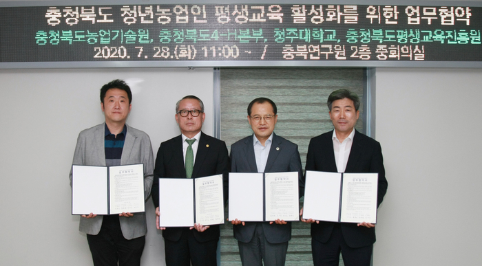 [충북넷=민정홍 기자] 청주대학교(총장 차천수)는 충북도농업기술원, 한국 4-H 충북본부, 충북도평생교육진흥원과 청년 농업인 평생교육 활성화를 위한 업무협약을 체결했다고 28일 밝혔다.
