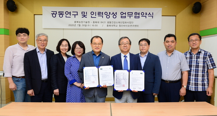 [충북넷=민정홍 기자] 충청북도농업기술원(원장 송용섭)은 충북대학교 BK21(BrainKorea21) 플러스 생물건강소재산업화사업단(단장 한남수)과 함께 신기술 공동연구 및 대학원생 현장 인턴십 등 양 기관의 발전을 위하여 적극적으로 협력할 것을 밝히고 나섰다.