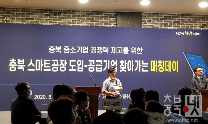 ![]() ▲ 11일 충북혁신도시 거성호텔에서 열린 '충북 스마트공장 도입-공급기업 매칭데이'에서 선일다이파스 윤여범 이사가 성공사례를 발표하고 있다. © |