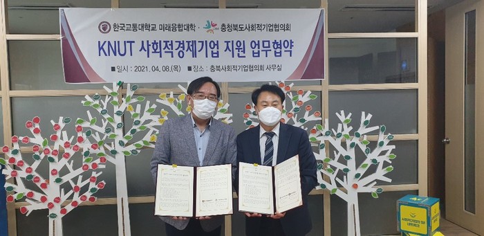 [충북넷=이규영 기자] 한국교통대학교(총장 박준훈) 미래융합대학과 (사)충청북도사회적기업협의회는 지난 8일 ‘KNUT 사회적경제기업 지원 업무 협약’을 체결했다고 9일 밝혔다.