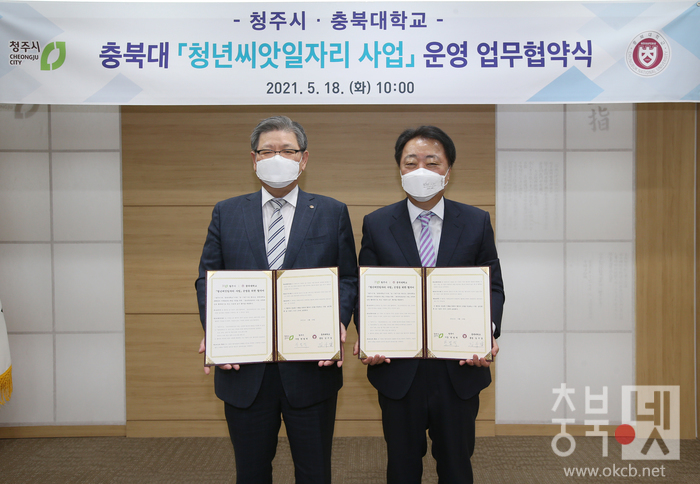 이번 협약으로 시는 청년씨앗일자리 사업에 예산을 지원하고, 충북대는 청년들에게 취업 지원 관련 서비스를 제공한다.