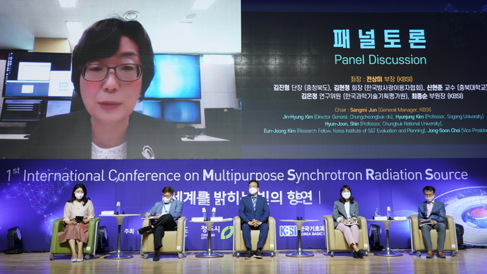 이어진 패널토론에서는 충북도 김진형 방사광가속기추진지원단장, 김현정 한국방사광이용자협회장, 과학기술기획평가원 김은정 연구위원, 충북대학교 신현준 교수, 최종순 KBSI 부원장이 패널로 참여하여 다목적 방사광가속기 구축사업의 관리 및 정부·지자체 역할, 성공적 운영요소 및 위험관리 등을 주제로 의견을 나눴다.