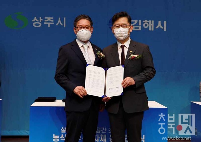 ![]() ▲ 왼쪽부터 박세복 군수, 김현수 농림축산식품부장관이 협약 후 기념촬영 모습 / 영동군 제공 © |